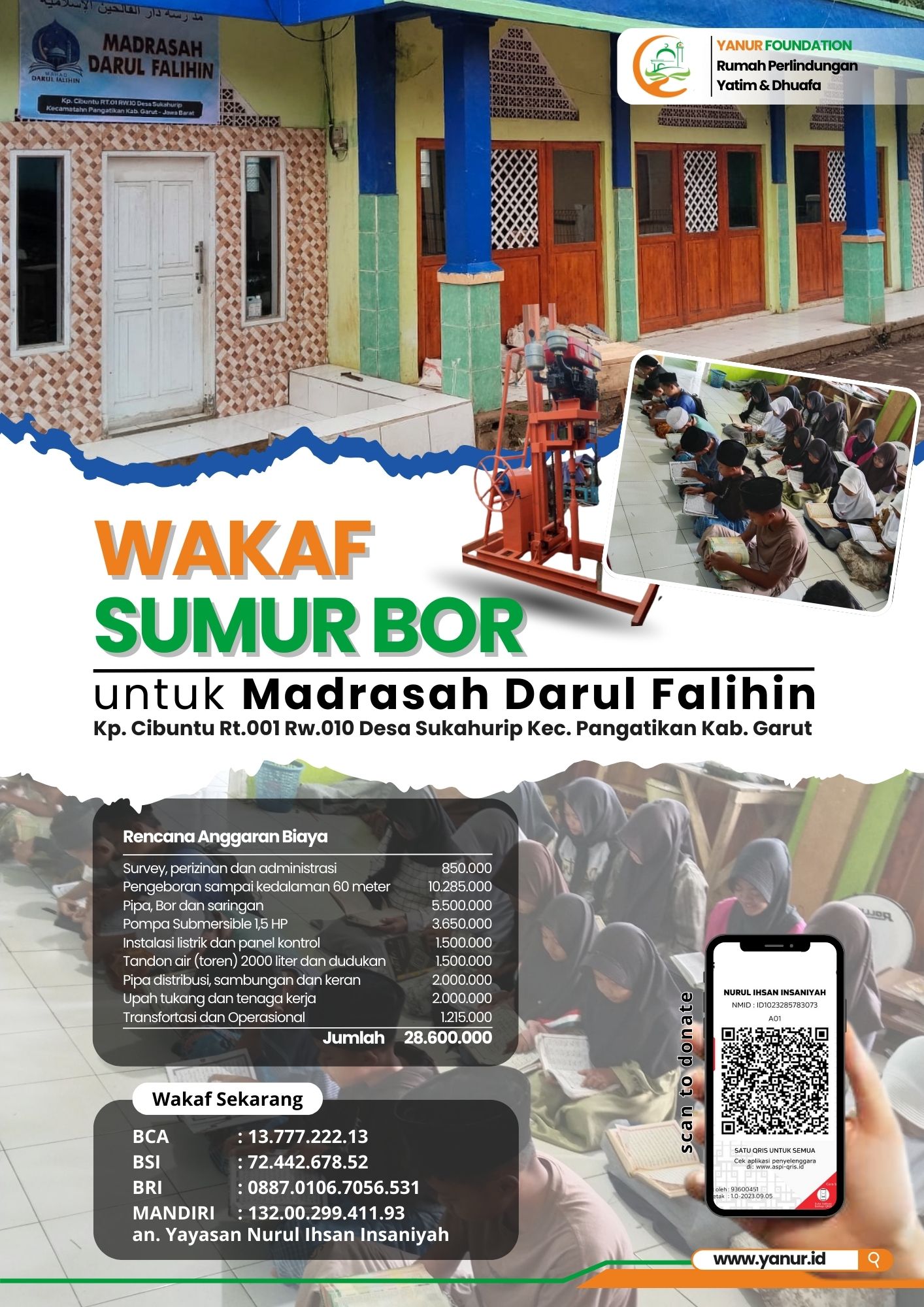 Berikut kami sampaikan Rencana Anggaran Biaya untuk pengadaan Sumur Bor untuk Ponpes Darul Falihin: