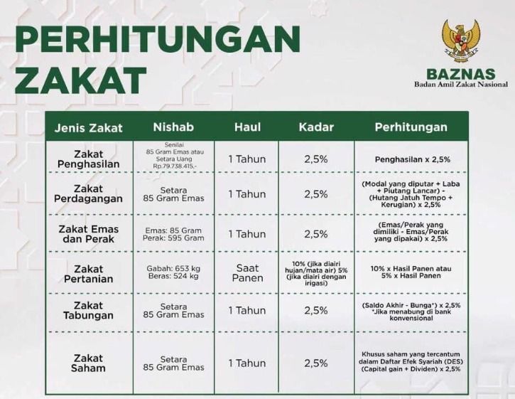 Berikut kami lampirkan tabel perhitungan zakat untuk memudahkan kita berzakat :
